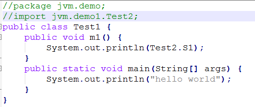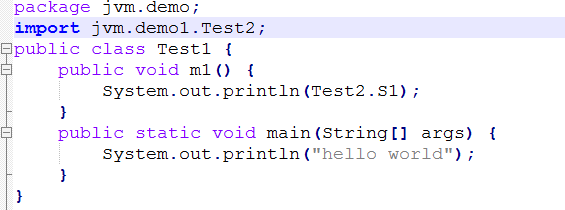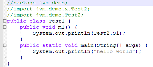 实验解释:编译Test1---在src\jvm\demo查找Test2,找到但是类路径为Test2,应该为jvm.demo.Test2--然后在import路径查找,找到
