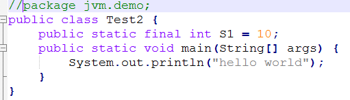 实验解释:编译Test1---在src\jvm\demo查找Test2,找到但是类路径为Test2,应该为jvm.demo.Test2