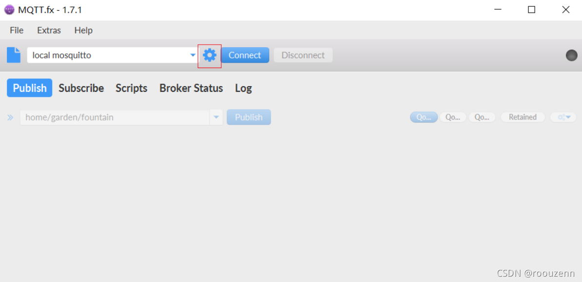 4.点击小齿轮并将测试工具连接到我们刚刚搭建的mqtt服务器