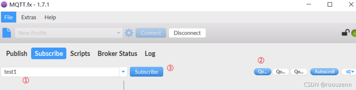 6.点击这里的subscrible(订阅),并在搜索框随便输入一个订阅主题,qos任意选择一个,具体的等级去了解基础理论,最后点击subscrible进行订阅