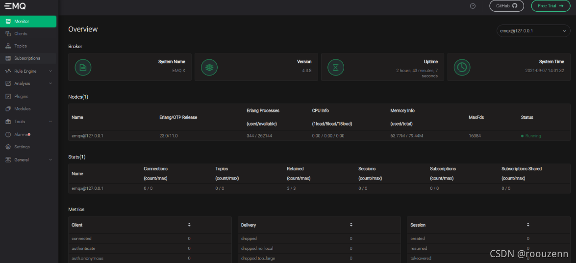 5.进入确保emqx已正常运行后,可在浏览器中输入:http://127.0.0.1:18083