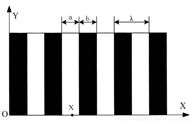 投射光栅条纹的分布如下图,a为线间缝宽,b为栅线宽,A为光栅节距。