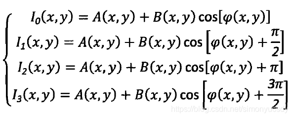 以四步相移法为例,当N=4时,相位移间隔为,则四幅光栅图像的相位移依次是0,