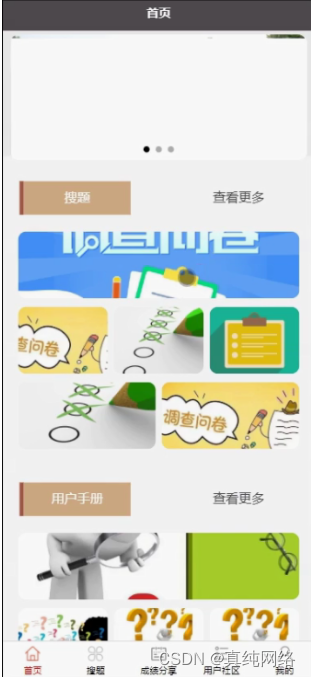 用户登陆小程序端,可以对首页、搜题、成绩分享、用户社区、我的等功能进行详细操作,如图5-3所示。