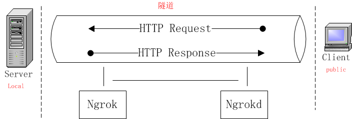 ngrok 建立一个隧道,将主机A的http请求 传递给 主机B,从而实现内网穿透。