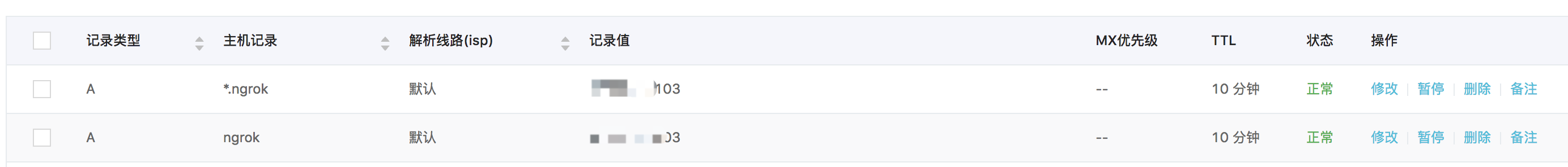 增加2条A记录,指向你的服务器。这里我配置的是 ngrok.xxxx.com 和 *.ngrok.xxxx.com添加安全组。