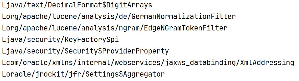 public class analysisclass {public static void classanalysis() throws IOException, ClassHierarchyException {AnalysisScope scope = AnalysisScopeReader.instance.makeJavaBinaryAnalysisScope("h2.jar", (new FileProvider()).getFile(CallGraphTestUtil.REGRESSION_EXCLUSIONS));ClassHierarchy cha = ClassHierarchyFactory.make(scope);for(IClass klass : cha){System.out.println(klass.getName());}}public static void main(String[] args) throws IOException, ClassHierarchyException {classanalysis();}