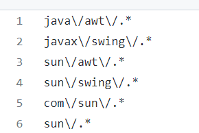可见CallGraphTestUtil.REGRESSION_EXCLUSIONS为标准库中的内容,表示按照lib库剪裁,比如sun/*都会被排除,所构建的类层次图中不会包含这个包中的任何方法。CallGraphTestUtil.REGRESSION_EXCLUSIONS的值为“ava60RegressionExclusions.txt”,与其并列的还有REGRESSION_EXCLUSIONS_FOR_GUI ="Java60RegressionExclusionsForGUI.txt"