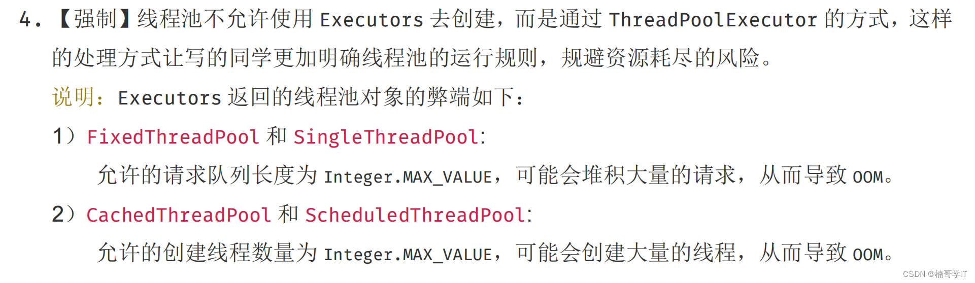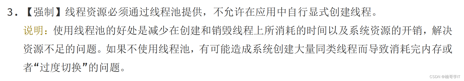 在阿里java开发手册中关于线程的创建,需要用线程池进行创建,并且是强制的。
