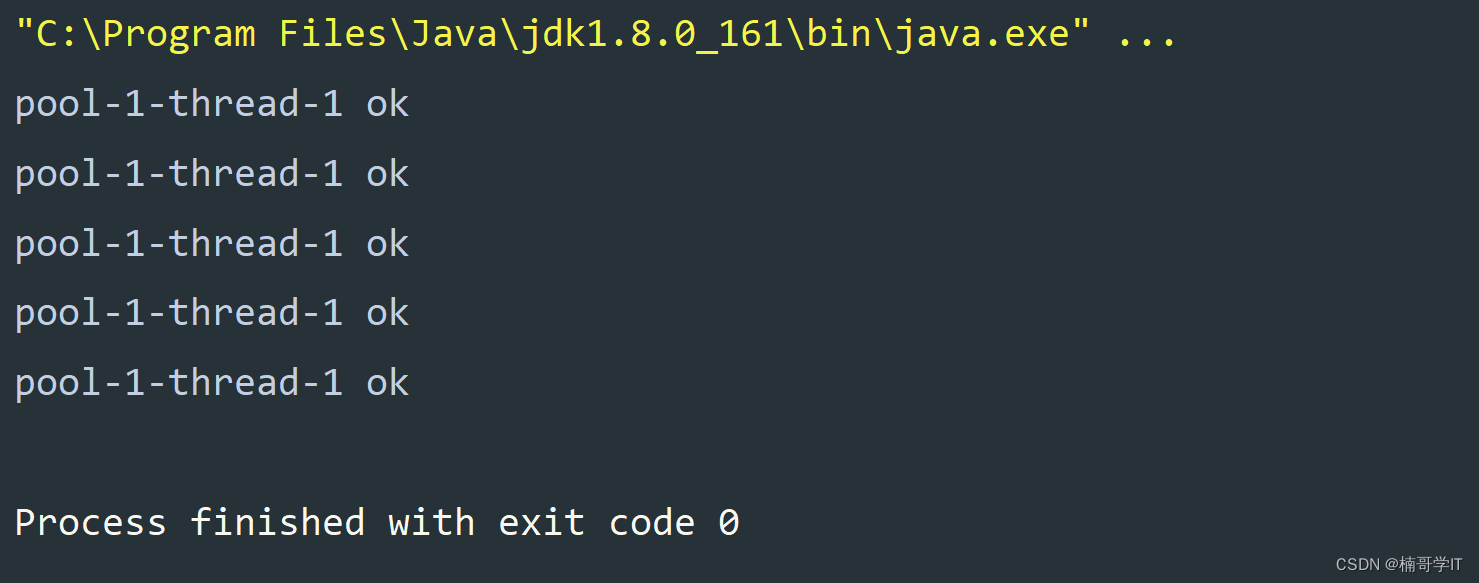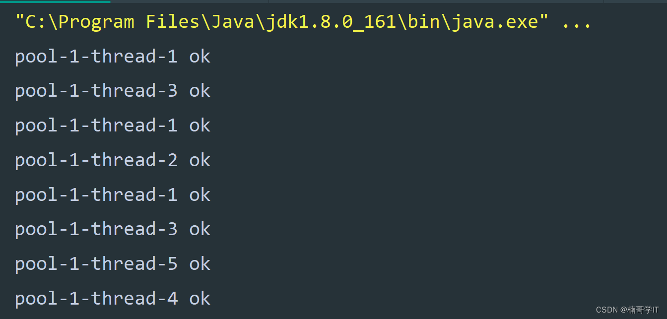 public class ThreadPool {public static void main(String[] args) {ExecutorService threadPool = Executors.newSingleThreadExecutor();// 单个线程ExecutorService threadPoo2 = Executors.newFixedThreadPool(5); // 创建一 个固定的线程池的大小ExecutorService threadPool3 = Executors.newCachedThreadPool(); // 可伸缩的,遇强则强,遇弱则弱try {for (int i = 0; i < 5; i++) {//使用线程池来创建线程threadPool.execute(() -> {System.out.println(Thread.currentThread().getName() + " ok");});}} catch (Exception e) {e.printStackTrace();} finally {//线程池用完,程序结束,关闭线程池threadPool.shutdown();}}
