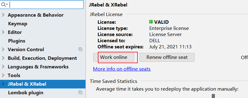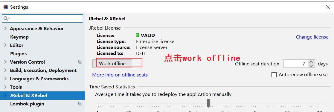 注意:jrebel激活之后默认是联网使用的 , 在该模式下 , jrebel会一直联网监测激活信息 . 所以要改为离线使用