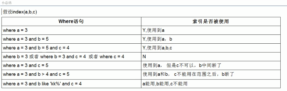 4.不能使用索引中范围条件右边的列。(范围条件之后的索引全失效,但是范围条件之前的和范围条件的还是用到索引的。)
