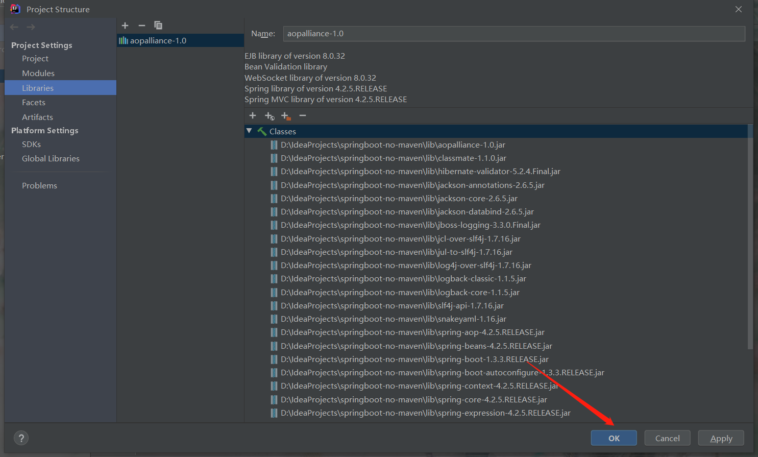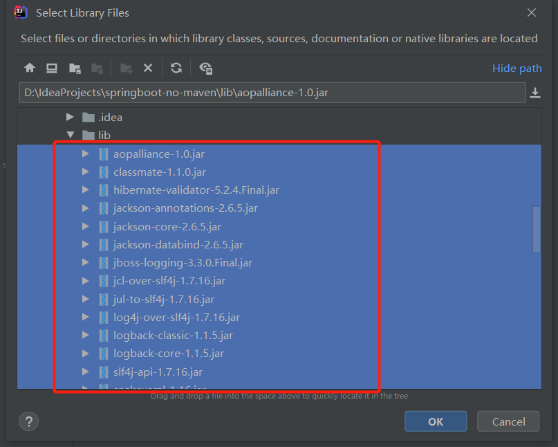 6、找到自己项目的文件夹,全选lib下的所有jar包,点击OK