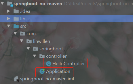 7、在src文件夹下创建以下目录结构(可根据您自身的情况创建),并编写HelloController类和Application类