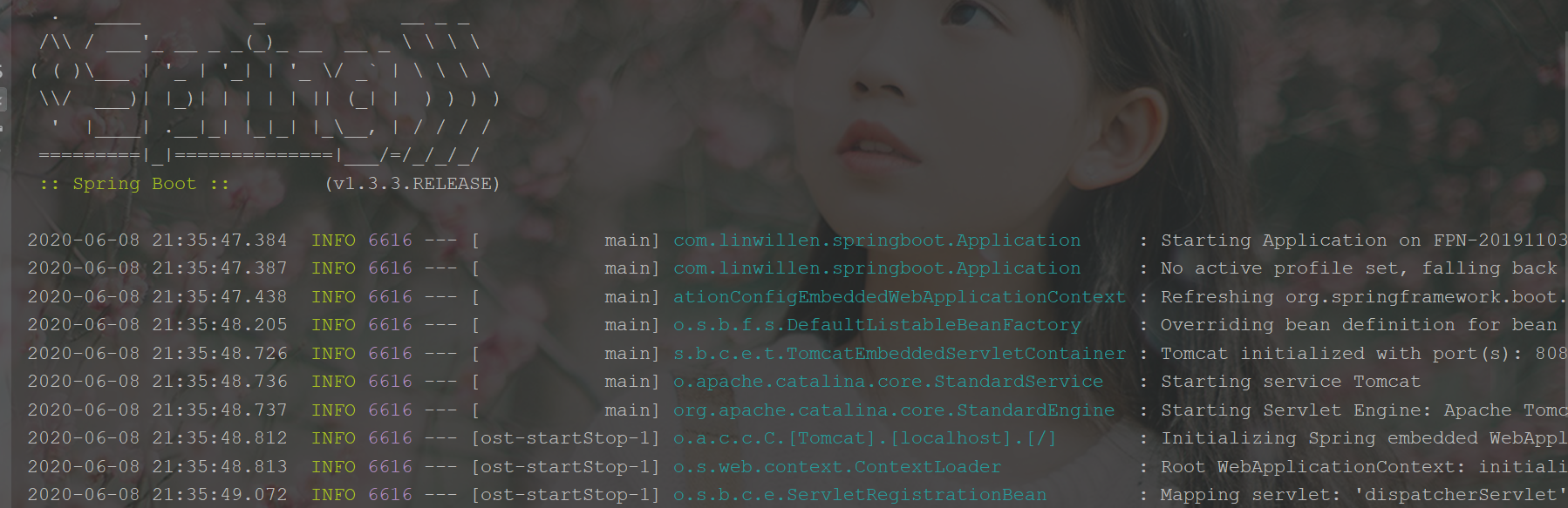 8、点击run,控制台打印日志信息,SpringBoot项目启动成功