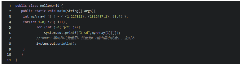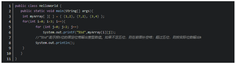 #如输出结果第一行所示,长度>5的数据,会紧贴左边数据输出,即无须“当位数不足五位时,在前面补空格”。