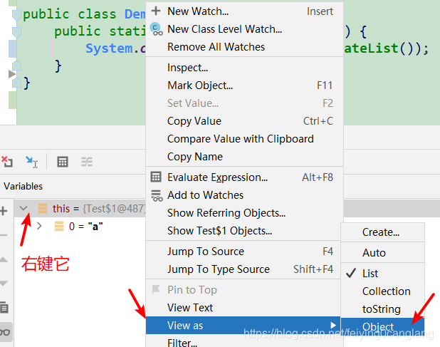 在Debug过程中,跟踪查看变量的变化是非常必要的,这里就简单说下IDEA中可以查看变量的几个地方,相信大部分人都了解。