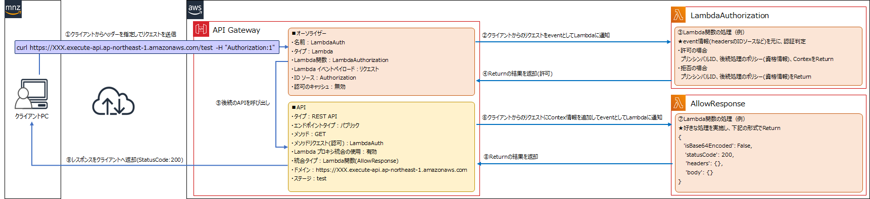 簡単に言うと、Lambdaオーソライザーは、後続のAPIを実行するポリシードキュメントを返す仕組みです。