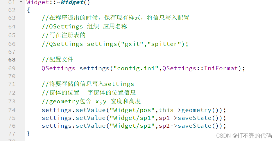 窗口打开如果没有记住上次打开的记录,每次关闭它都会重复在同样位置同样大小,好比如手机格式化,如果我们要记住这些位置操作,就要将位置大小信息在程序关闭前保留到配置文件中,下次用户打开该文件就会先读取之前的位置大小信息。QSettings可以帮助我们实现该功能;