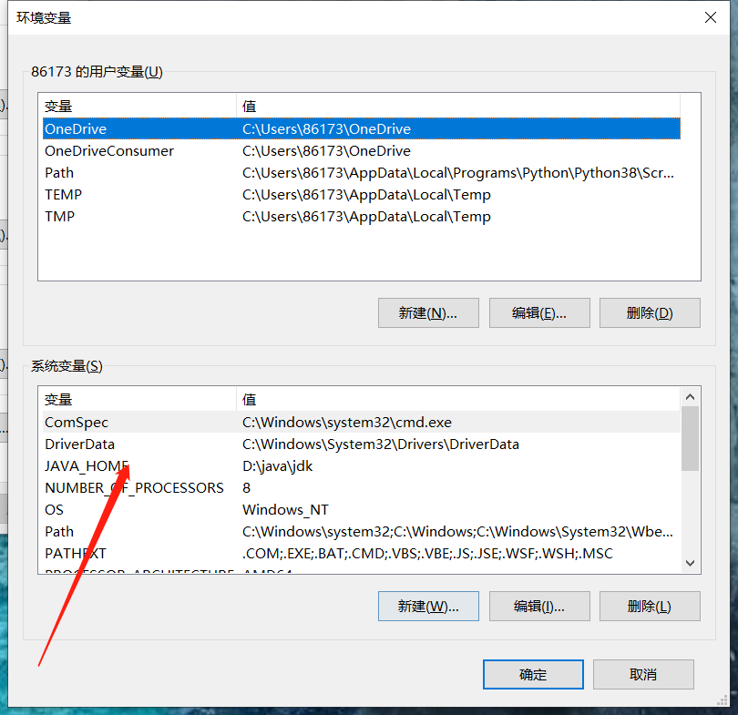 4.配置环境变量(在电脑属性,高级系统设置在系统变量中新建JAVE_HOME变量值为安装的路径)