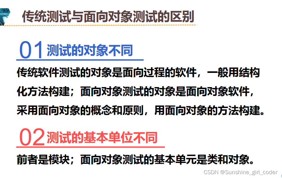 传统的单元测试主要关注模块的算法;面向对象软件的类测试主要是测试封装在类中的操作以及类的状态行为,需要分两步:
