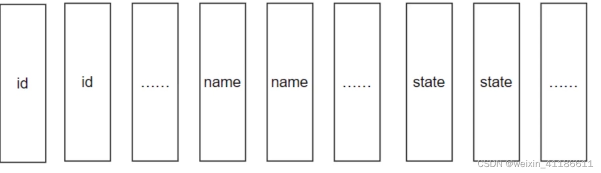 数据一列一列的存,某一种属性就存储一列。一列中的数据在存储介质中以连续存储形式存在。