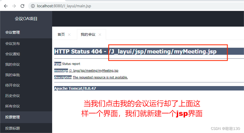 // 如果大于0说明可以新增if(n>0) {ResponseUtil.writeJson(resp, R.ok(200, "会议信息数据新增成功"));}else {ResponseUtil.writeJson(resp, R.ok(0, "会议信息数据新增失败"));}} catch (Exception e) {e.printStackTrace();try {ResponseUtil.writeJson(resp, R.error(0, "会议信息数据新增失败"));} catch (Exception e1) {// TODO Auto-generated catch blocke1.printStackTrace();}}return null;}// 我的会议public String myInfos(HttpServletRequest req, HttpServletResponse resp) {try {PageBean pageBean = new PageBean();pageBean.setRequest(req);List