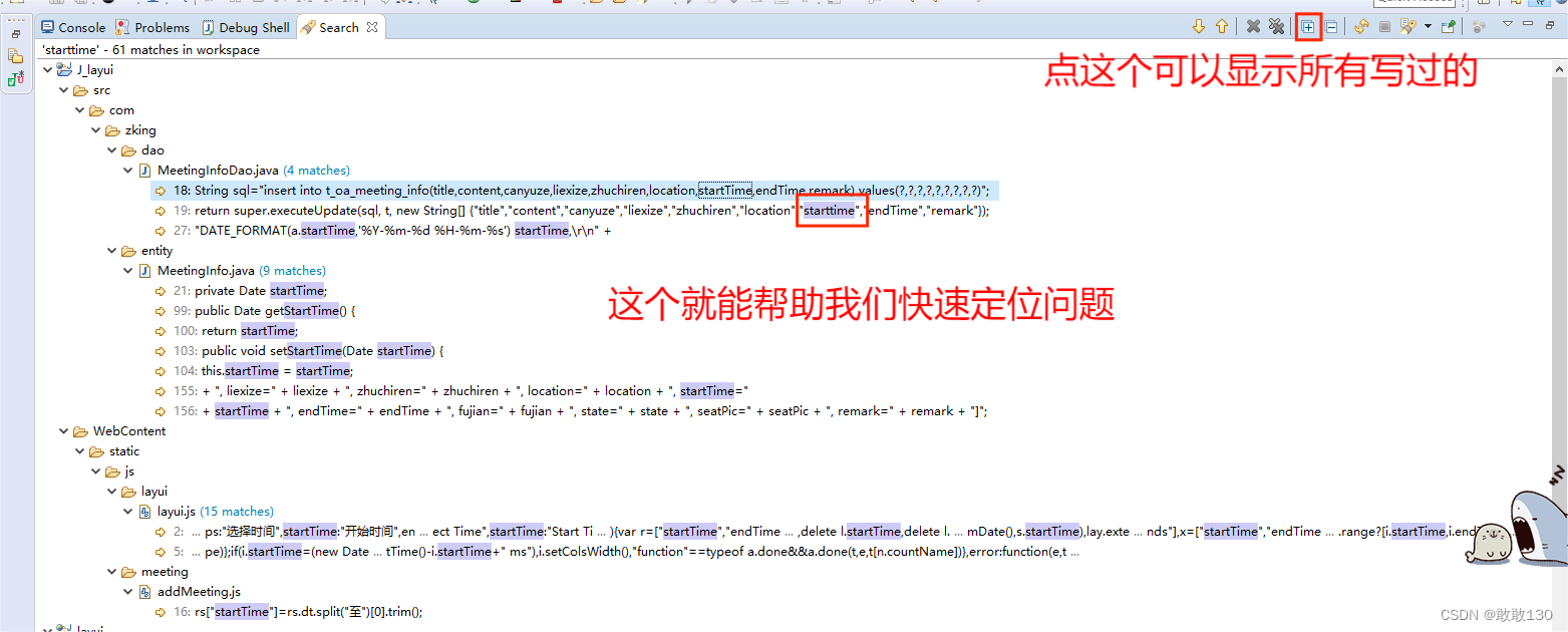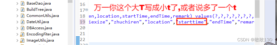上面的SQL语句大致是这样的实际我们要把它拆开来,因为我们的startTime是时间类型的它并不会直接显示时间到页面上面去,我们需要做这个格式化,啥意思,因为我们上面的SQL语句是直接同a.*把这个数据查询出来返回到页面上面去,它会显示一个字符串一个数字长串null类型的一个长串,所以说我们不能用这个a.*,这是第一个点