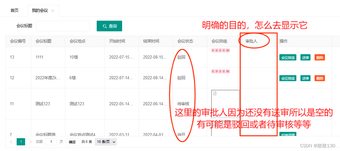 当前登录账号,是 某会议 的指定审批人,并且会议状态是待审核,则查询出来