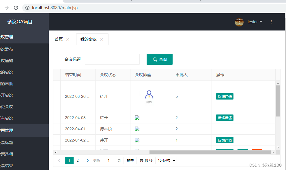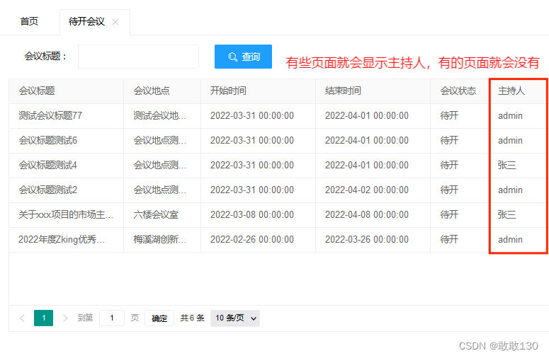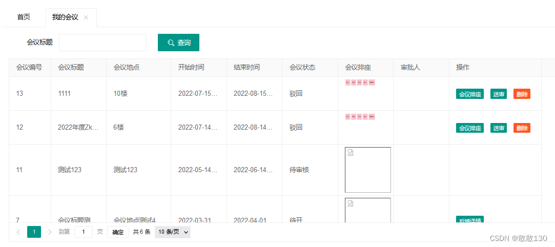 那么是为4就应该查询出来,相比上面的会议通知多了一个条件叫会议状态历史会议: