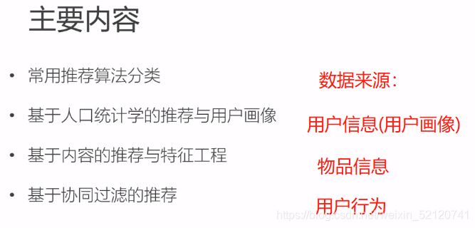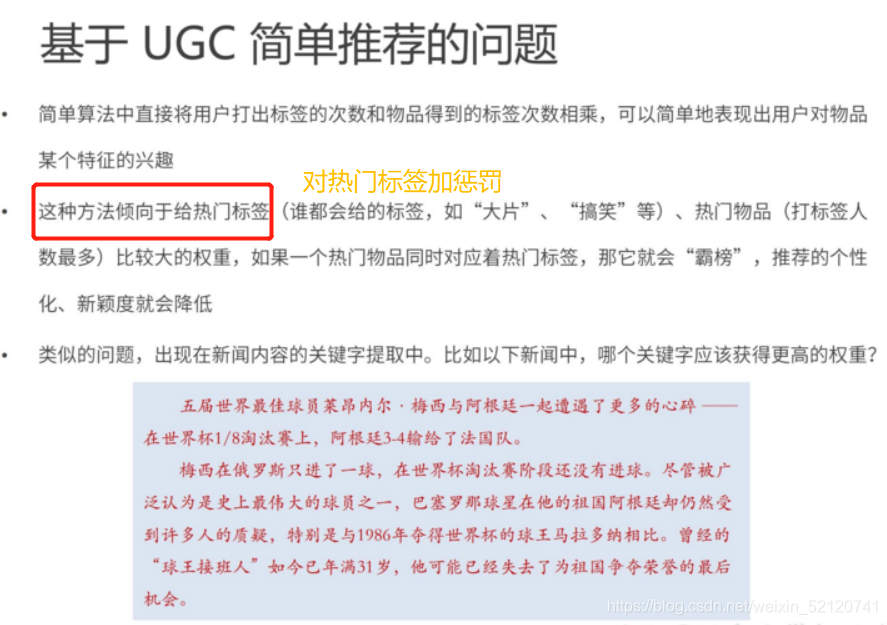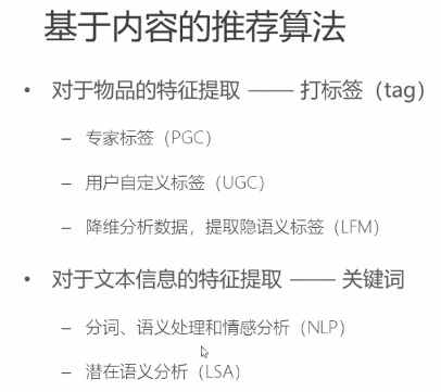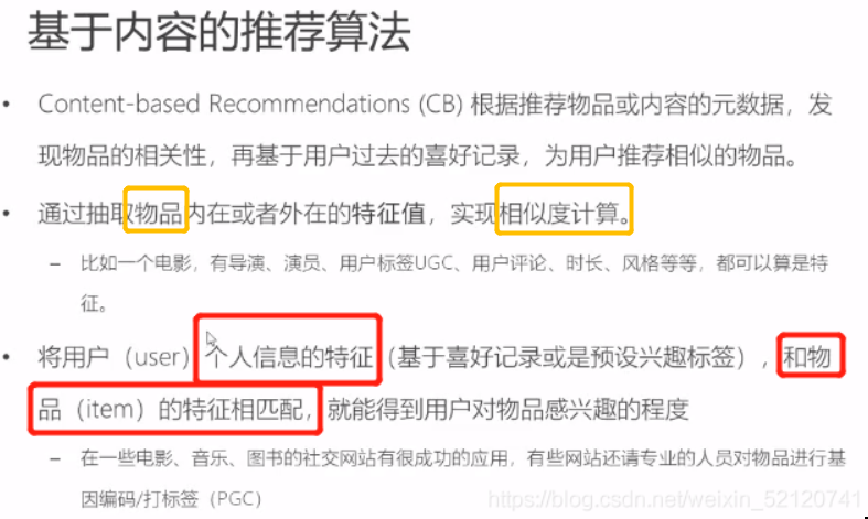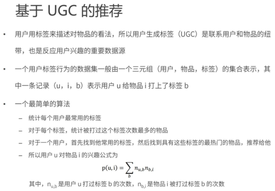 内容推荐:基于物品本身的特征,找到相似物品的集合 UGC