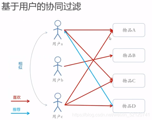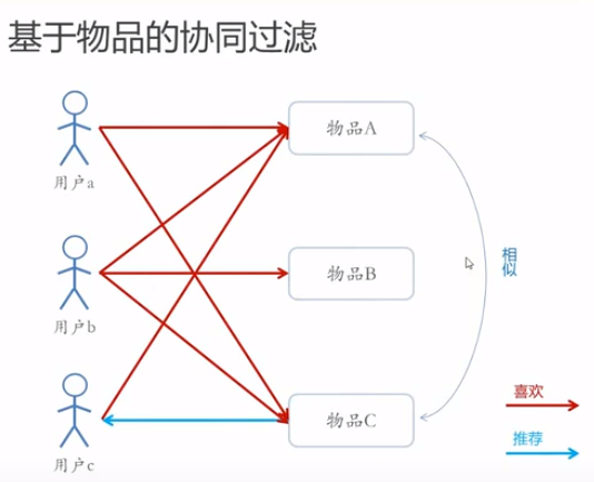 所以,我们认为喜欢物品A的用户c也会喜欢物品C,因此把物品C推荐给用户c