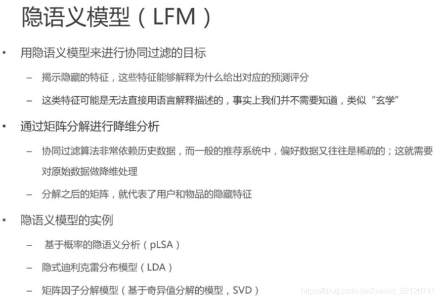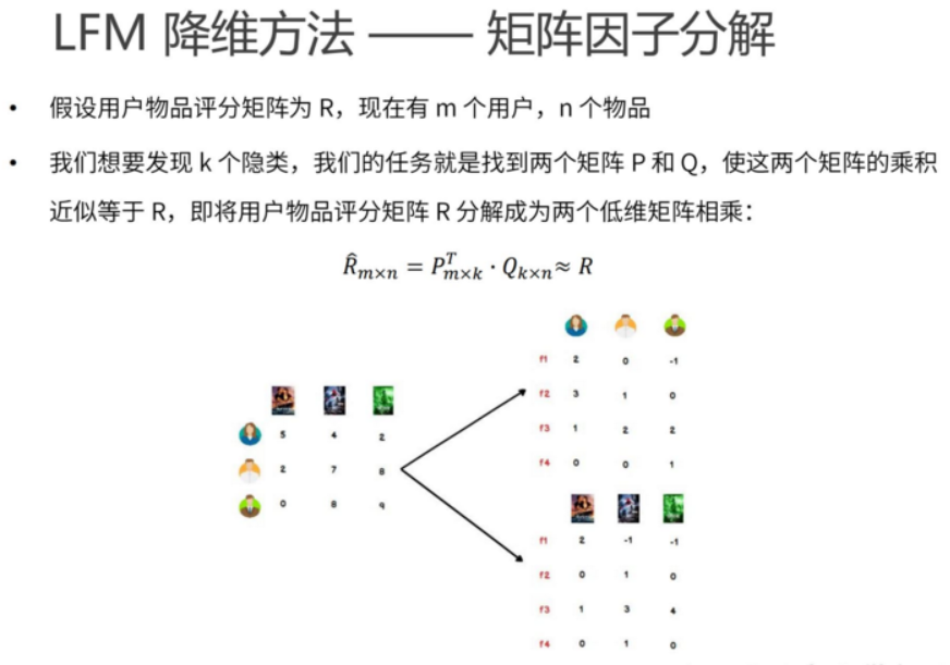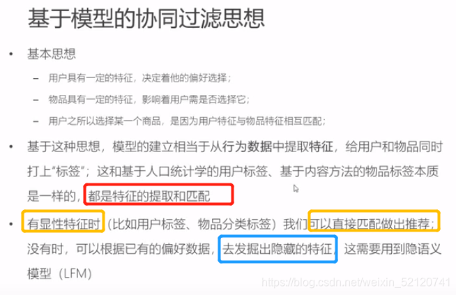 基于模型的CF:从用户行为中提取特征,给用户和物品都打上标签,LFM发现隐形特征