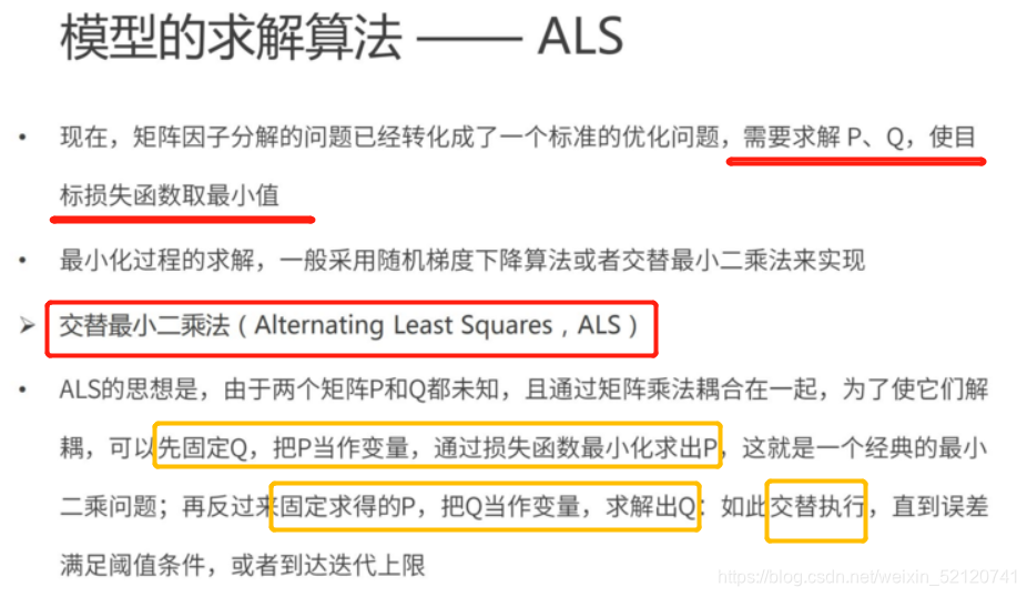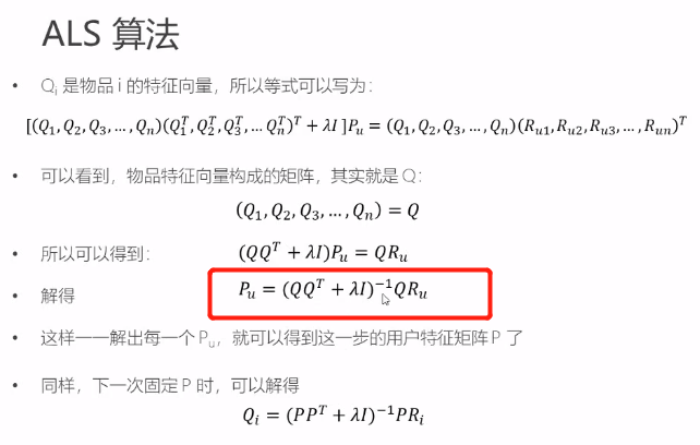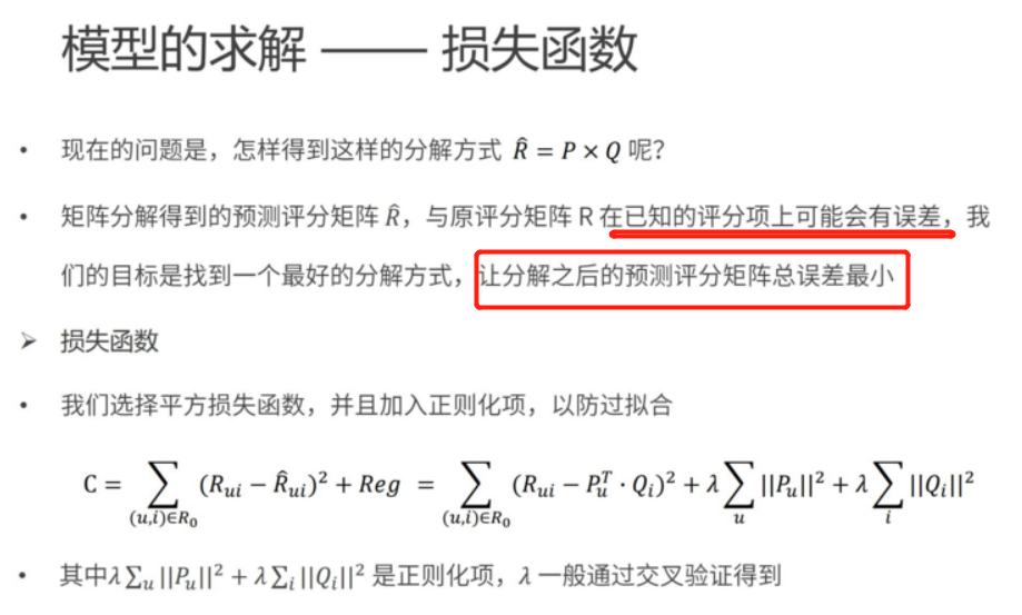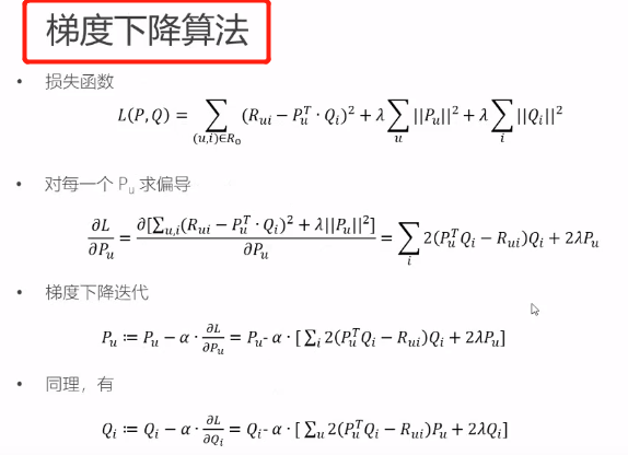 def LFM_grad_desc( R, K=2, max_iter=1000, alpha=0.0001, lamda=0.002 ):# 基本维度参数定义M = len(R)N = len(R[0])# P,Q初始值,随机生成P = np.random.rand(M, K)Q = np.random.rand(N, K)Q = Q.T# 开始迭代for step in range(max_iter):# 对所有的用户u、物品i做遍历,对应的特征向量Pu、Qi梯度下降for u in range(M):for i in range(N):# 对于每一个大于0的评分,求出预测评分误差if R[u][i] > 0:eui = np.dot( P[u,:], Q[:,i] ) - R[u][i]# 代入公式,按照梯度下降算法更新当前的Pu、Qifor k in range(K):P[u][k] = P[u][k] - alpha * ( 2 * eui * Q[k][i] + 2 * lamda * P[u][k] )Q[k][i] = Q[k][i] - alpha * ( 2 * eui * P[u][k] + 2 * lamda * Q[k][i] )# u、i遍历完成,所有特征向量更新完成,可以得到P、Q,可以计算预测评分矩阵predR = np.dot( P, Q )# 计算当前损失函数cost = 0for u in range(M):for i in range(N):if R[u][i] > 0:cost += ( np.dot( P[u,:], Q[:,i] ) - R[u][i] ) ** 2# 加上正则化项for k in range(K):cost += lamda * ( P[u][k] ** 2 + Q[k][i] ** 2 )if cost < 0.0001:breakreturn P, Q.T, cost#3.测试