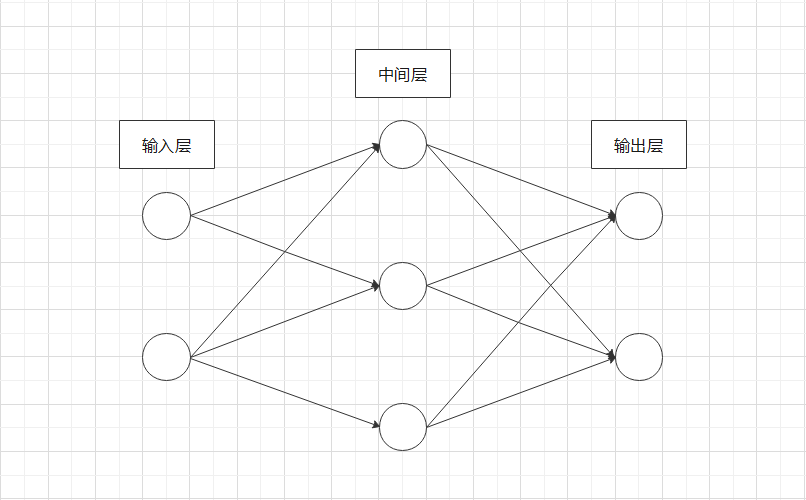 我们把最左边的一列称为输入层,最右边的一列称为输出层,中间的一列称为中间层。