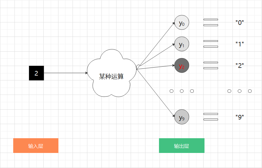 比如,对于某个输入图像,预测是图中的数字 0 到 9 中的哪一个的的问题(10 类别分类问题),可以像图 2-20 这样,将输出层的神经元设定为 10个。