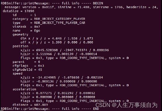 启动VTD,然后启动该ROS节点,运行仿真,就能在终端中看到打印的信息。