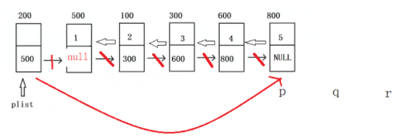 void Reverse1(Node* plist) {assert(plist != NULL && plist->next != NULL);Node* p = plist->next;Node* q = p->next;Node* r;p->next = NULL;while (q != NULL) {r = q->next;q->next = p;p = q;q = r;}plist->next = p;