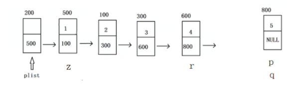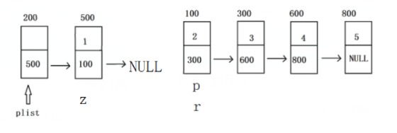 定义四个节点,z保存 头节点和首元素节点r节点保存要第二个元素节点的地址 p 和 q节点进行头插操作