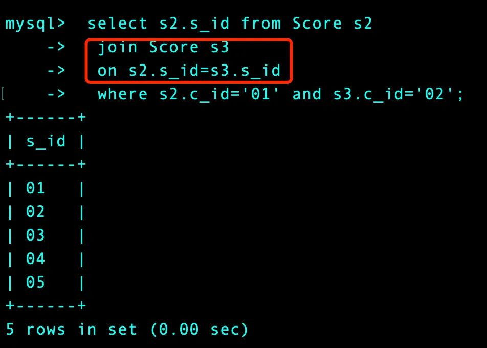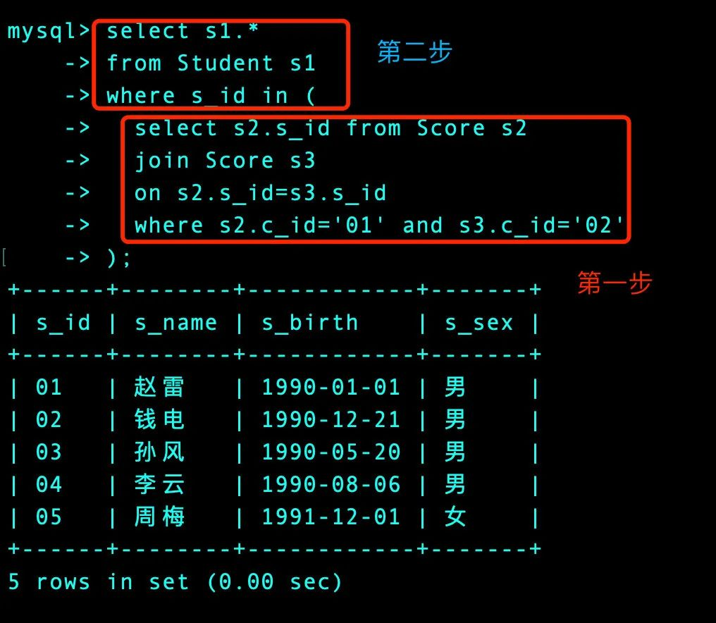 where s_id in (select s2.s_id from Score s2join Score s3on s2.s_id=s3.s_idwhere s2.c_id='01' and s3.c_id='02'