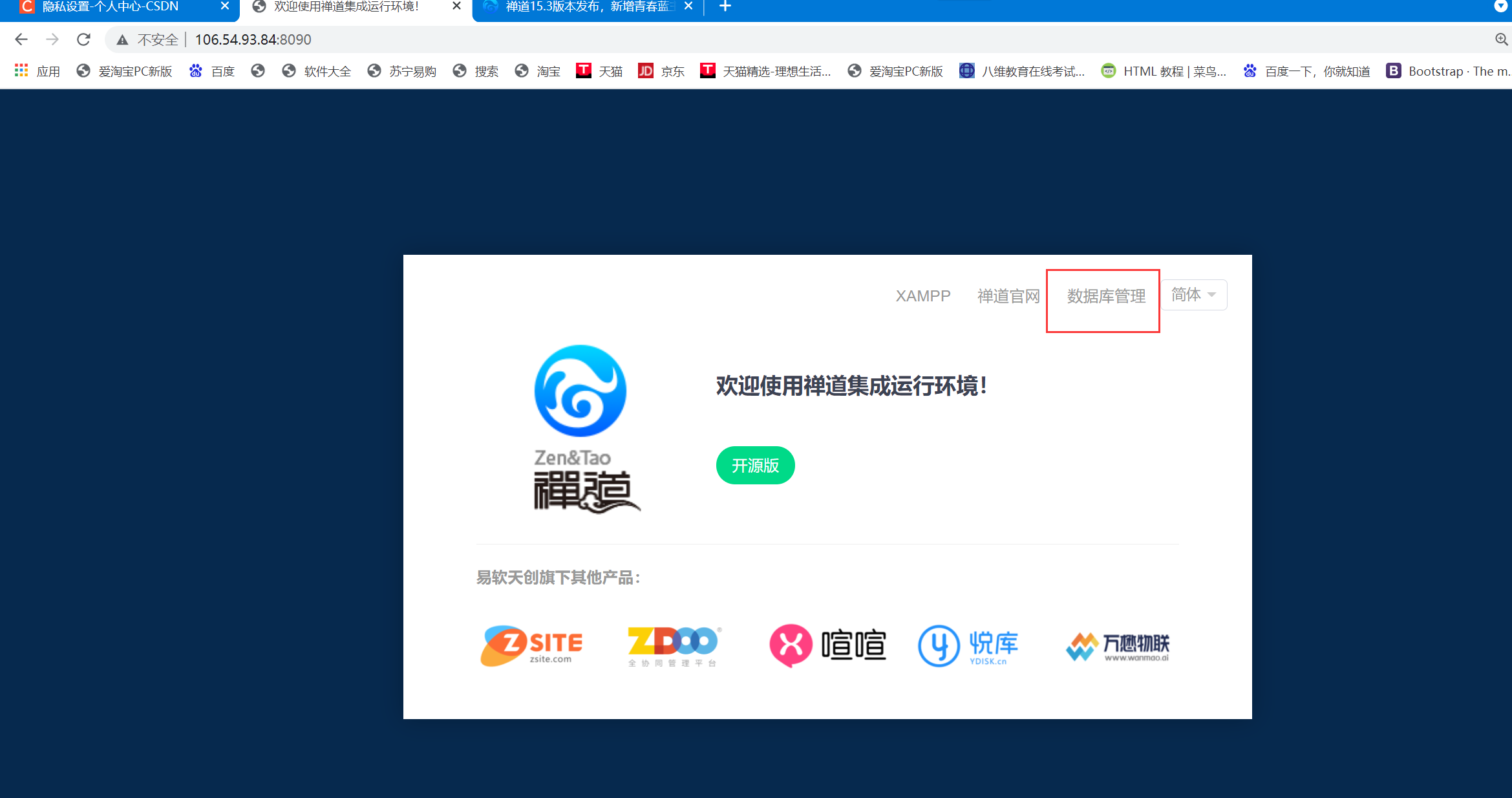 如何操作:网页访问http://禅道服务的ip:apache端口 点击数据库管理