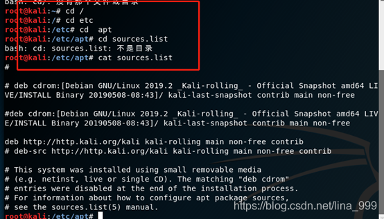 deb http://mirrors.aliyun.com/kali kali-rolling main non-free contrib deb-src http://mirrors.aliyun.com/kali kali-rolling main non-free contrib#清华大学deb http://mirrors.tuna.tsinghua.edu.cn/kali kali-rolling main contrib non-free deb-src https://mirrors.tuna.tsinghua.edu.cn/kali kali-rolling main contrib non-free