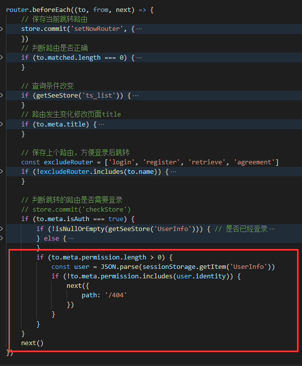 最后使用路由守卫对用户角色进行路由权限控制 router.beforEach()