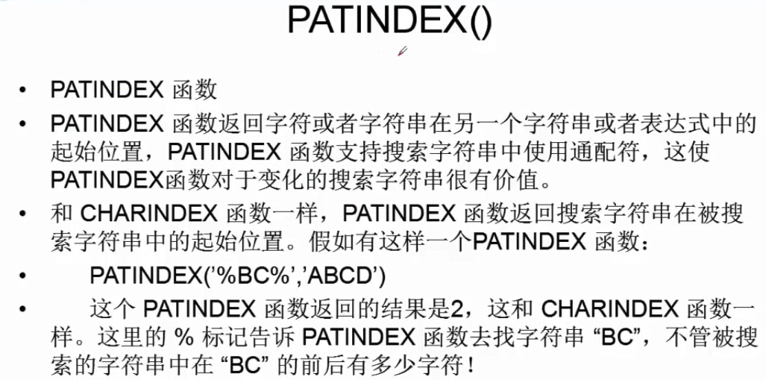 12.7 返回字符在另一个字符串中的位置——charindex()、patindex()