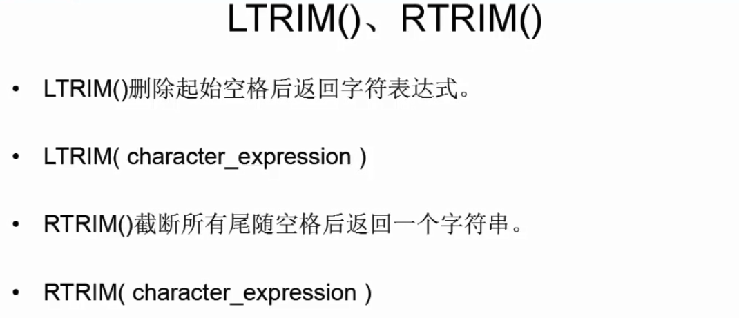 select ltrim(' aabbccdd ');#返回结果'aabbccdd ';