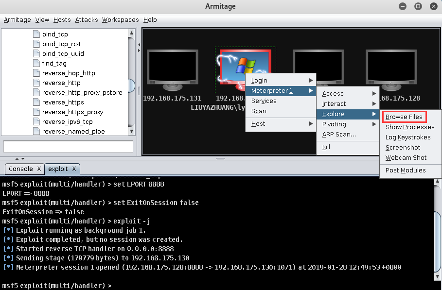 右键靶机图标->Meterpreter->Explore->Browse Files