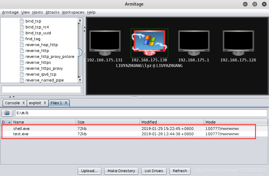 同时,可以看到靶机图标有红色闪电包围,说明我们成功拿下了靶机的Meterpreter。