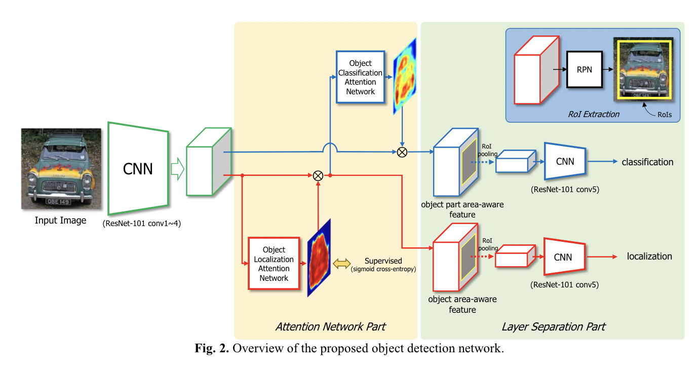 在本文中,我们提出了一种新的目标检测网络,考虑到目标分类和目标定位的明显差异。我们指出目标分类侧重于判别部分,目标定位侧重于整个目标区域。因此,我们引入了注意力网络来生成两个特定于任务的注意力图。每两个注意力图相乘的特征被输入到层分离部分,并执行两个任务。因此,通过考虑两个任务属性,提出的方法对每一层进行了有效的编码。实验结果证实,所提出的方法优于最先进的方法。