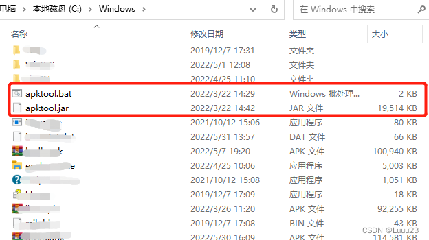 打开命令窗口(要反编译的apk文件要和apktool放在同一个文件夹里)