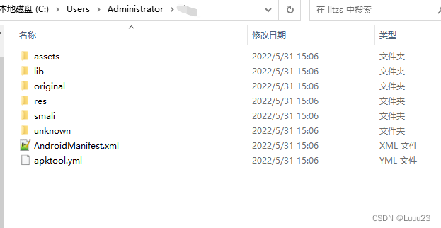反编译完成后在该目录下就生成了一个同名称的额文件夹,该文件夹就是apktool反编译出来的源文件,打开该文件就可以查看此apk的源代码了。